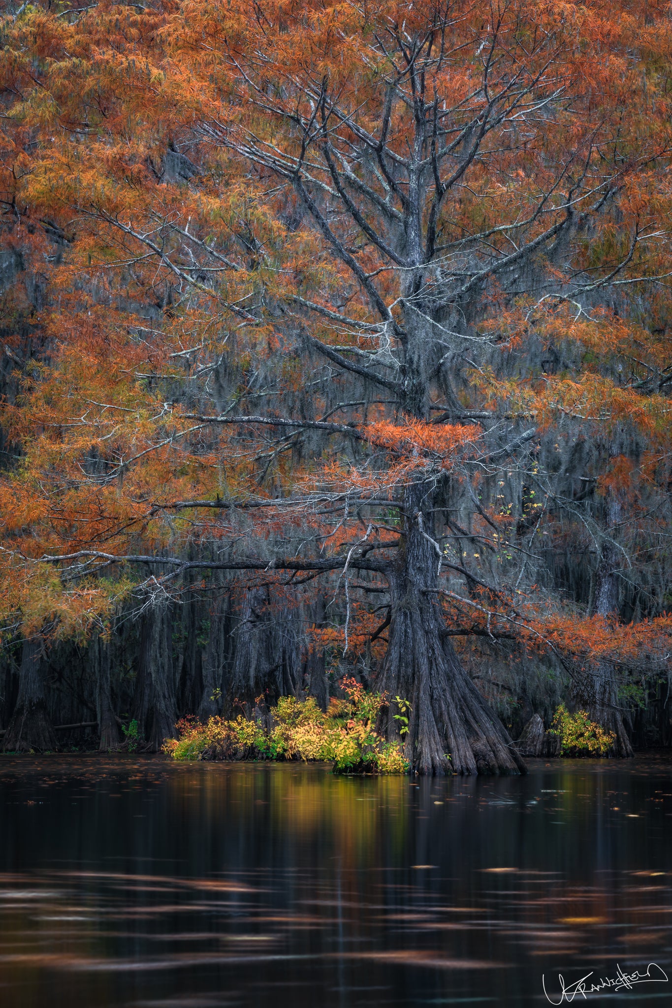 Sometimes, when I'm really 'in the zone' creatively, I can see the passage of time as a single moment. As I floated here in my canoe, I watched this tree and could see the leaves moving around on the calm water via some unseen current. Instead of single points of yellow, orange or red, I saw streaks.