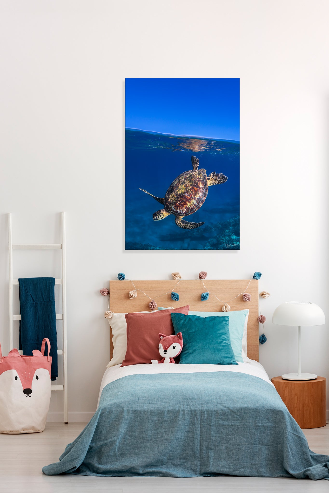 I would challenge you to find a sharper, crisper underwater fine art print. Available all the way up to six feet high on metal or lumachrome, our acrylic face mount process.